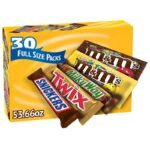 - Contains one (1) 53.66-ounce, 30-count box of full-size, individually wrapped (8) SNICKERS, (7) TWIX, (6) M&M’S Peanut Chocolate Candies, (5) M&M’S Milk Chocolate Candies and (4) MILKY WAY Chocolate Candy Bars